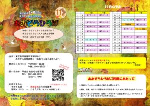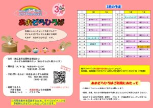 - 利用方法、注意事項について、あおぞらひろば便りに詳しく記載してありますのでご利用の際はそちらもご確認ください。
