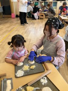 保育園で親子パン作り参観がありました。