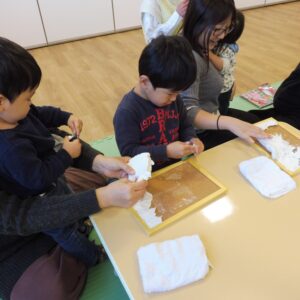 0歳児のお母さんたちは土台作りを集中して作り上げていらっしゃいましたよ。