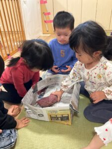 絵本や手遊びでさつまいもに親しみを持っている子どもたち。