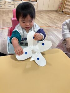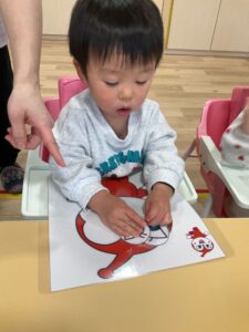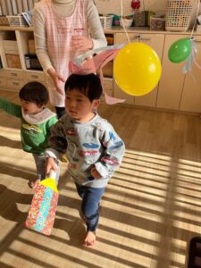 新しい年を迎え、身近な物を利用し子どもたちとお正月遊びを行いました。