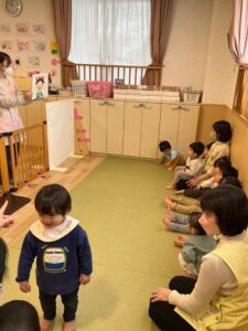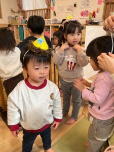 自分の中の弱い鬼を、「おにはーそと」って言って逃がそうね。というお話を真剣に聞いていました。